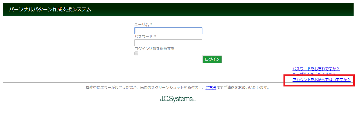- こちらをクリックし、「パーソナルパターン作成支援システム」のログイン画面を表示します。