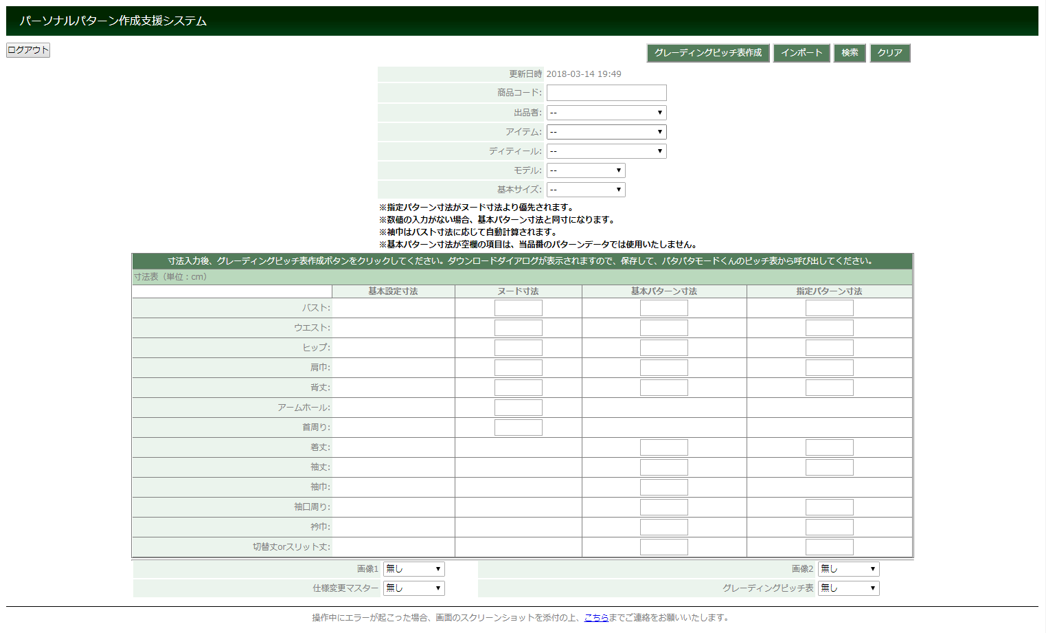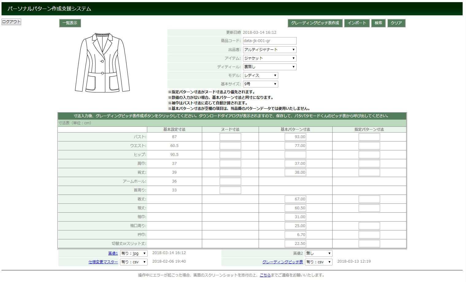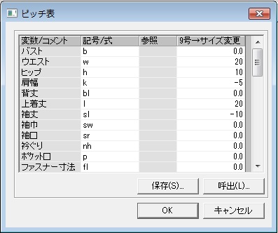 採寸値や希望の寸法を入力するだけで、パタパタモードくんのグレーディング機能で使用できるピッチ表が作成できます。