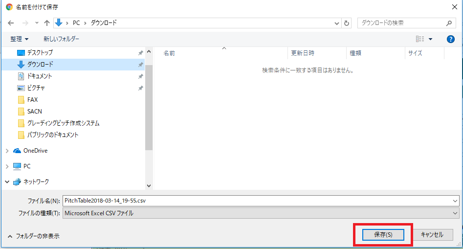 - 上部の「グレーディングピッチ表作成」をクリックすると、あなたのパソコンにピッチファイルがダウンロードされます。
