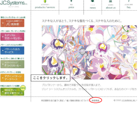 当社のホームページ画面下の「推奨環境」をクリックします。