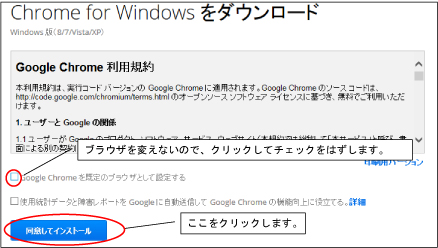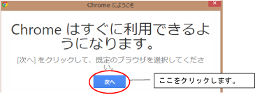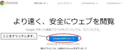 グーグルクロームの画面に移動します。「Chromeをダウンロード」をクリックします。