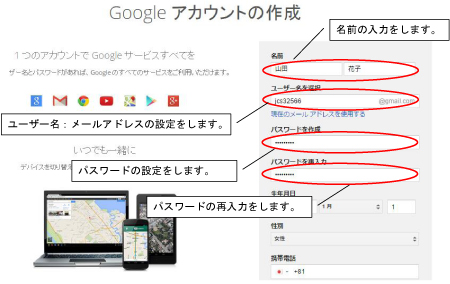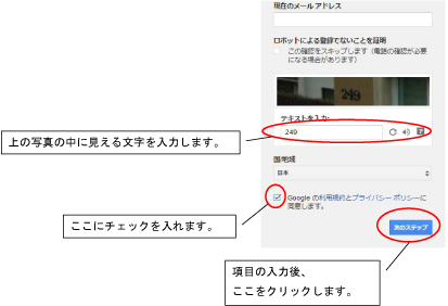 赤丸部分に入力します。入力後、「次のステップ」をクリックします。グーグルアカウントの削除・復旧についてはこちらを参照
