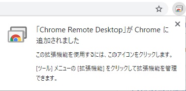 次に、Chromeブラウザを開き、右上の「chrome Remote Desktopアイコン」をクリックします。
