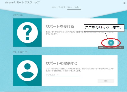 下記の画面に移動します。「Chromeリモートデスクトップをダウンロード」をクリックし任意の場所に保存します。