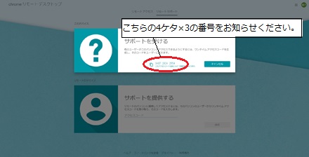 ※こちらのコード番号を、お知らせください。【画面の共有・問題の解決】